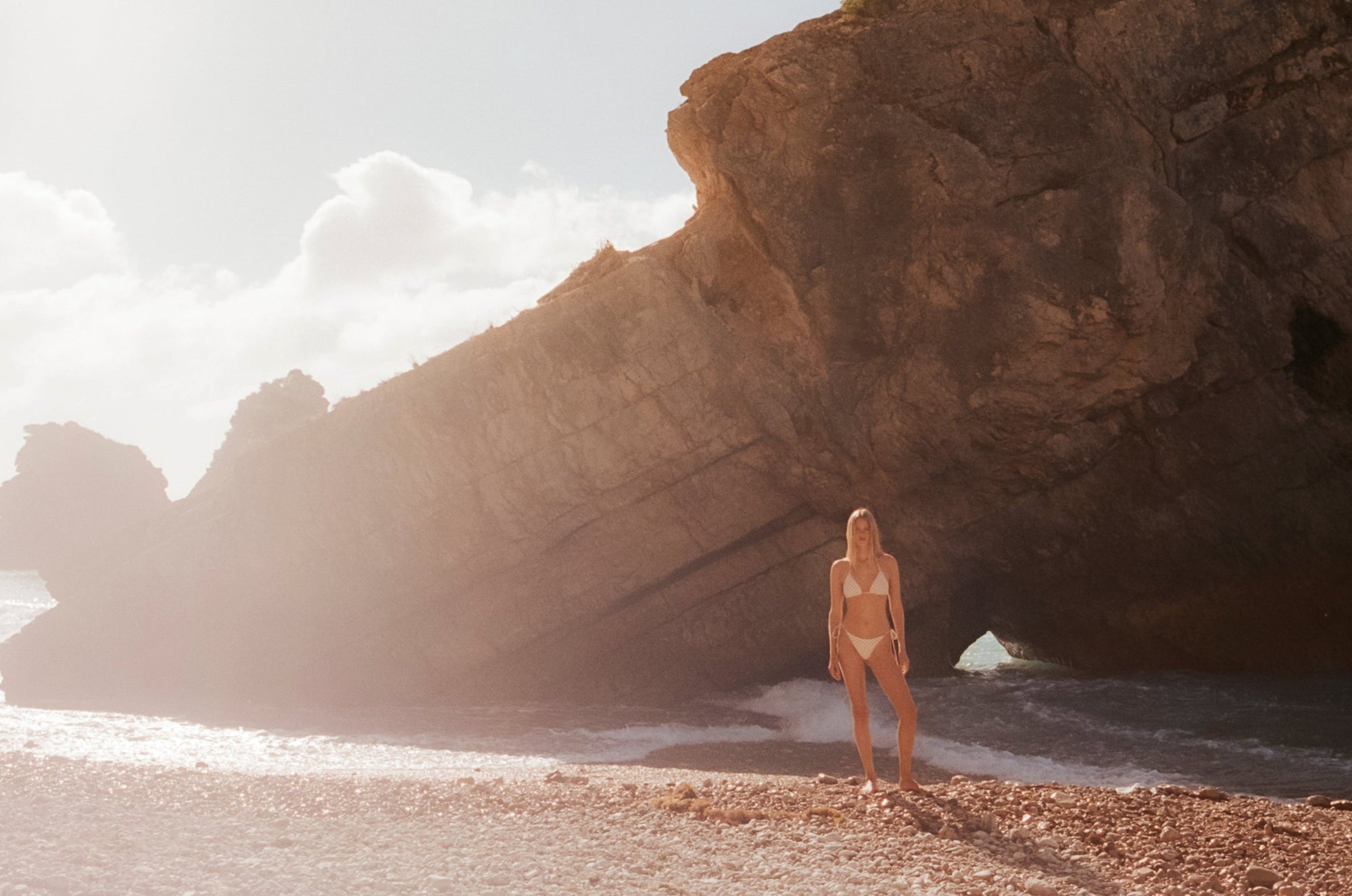 Nosso primeiro Resort coloca o biquíni à la française como protagonista: poás retrô em baunilha e preto, clássicos que atravessam o tempo, e o impacto essencial do preto absoluto, sempre atual. Modelagens minimalistas, amarrações sutis e chic, recortes que valorizam o corpo e a leveza dos linhos em tons de vanilla e preto traduzem o savoir-faire Bonne Soirée no universo beachwear.