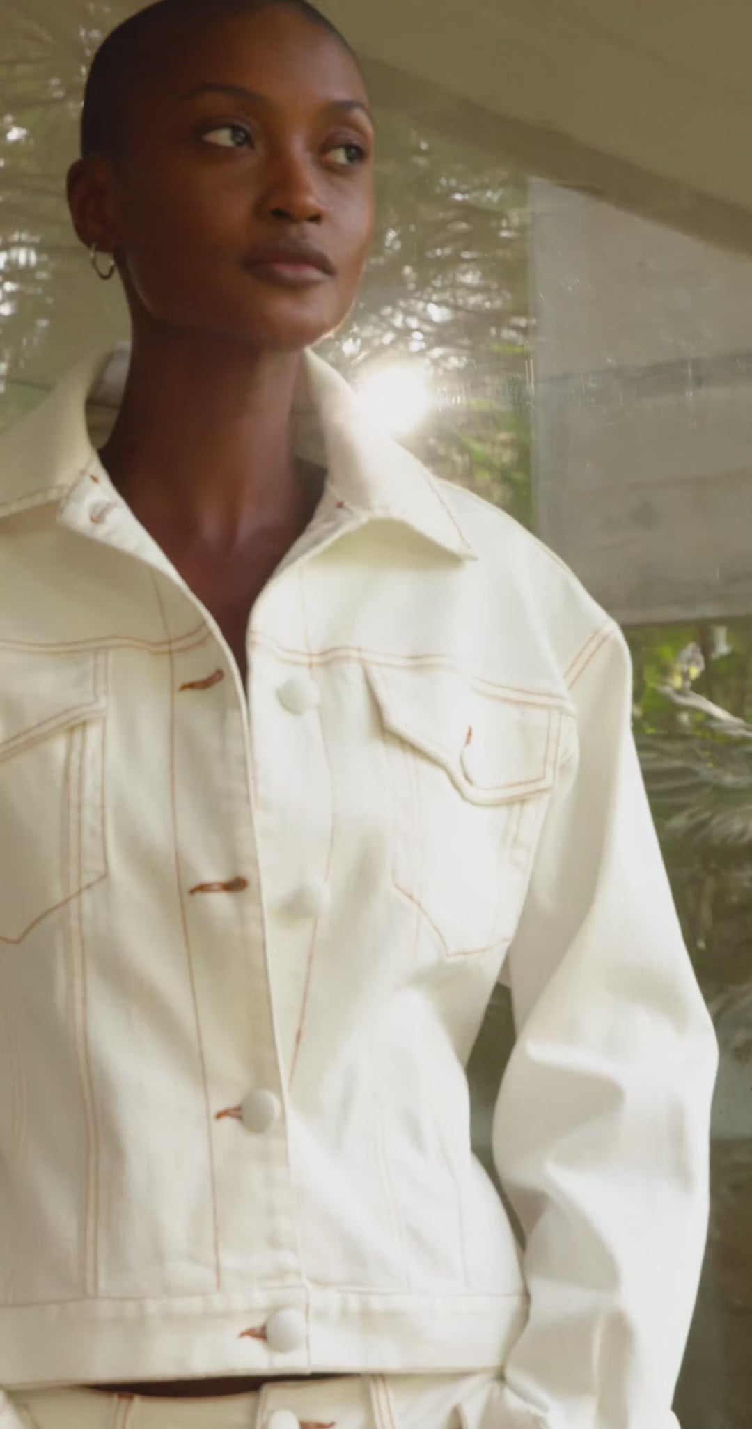 Minimalista e versátil, atravessa estações como uma peça atemporal, que pode ser usada sozinha ou coordenada com a Calça Margot para um look total denim.