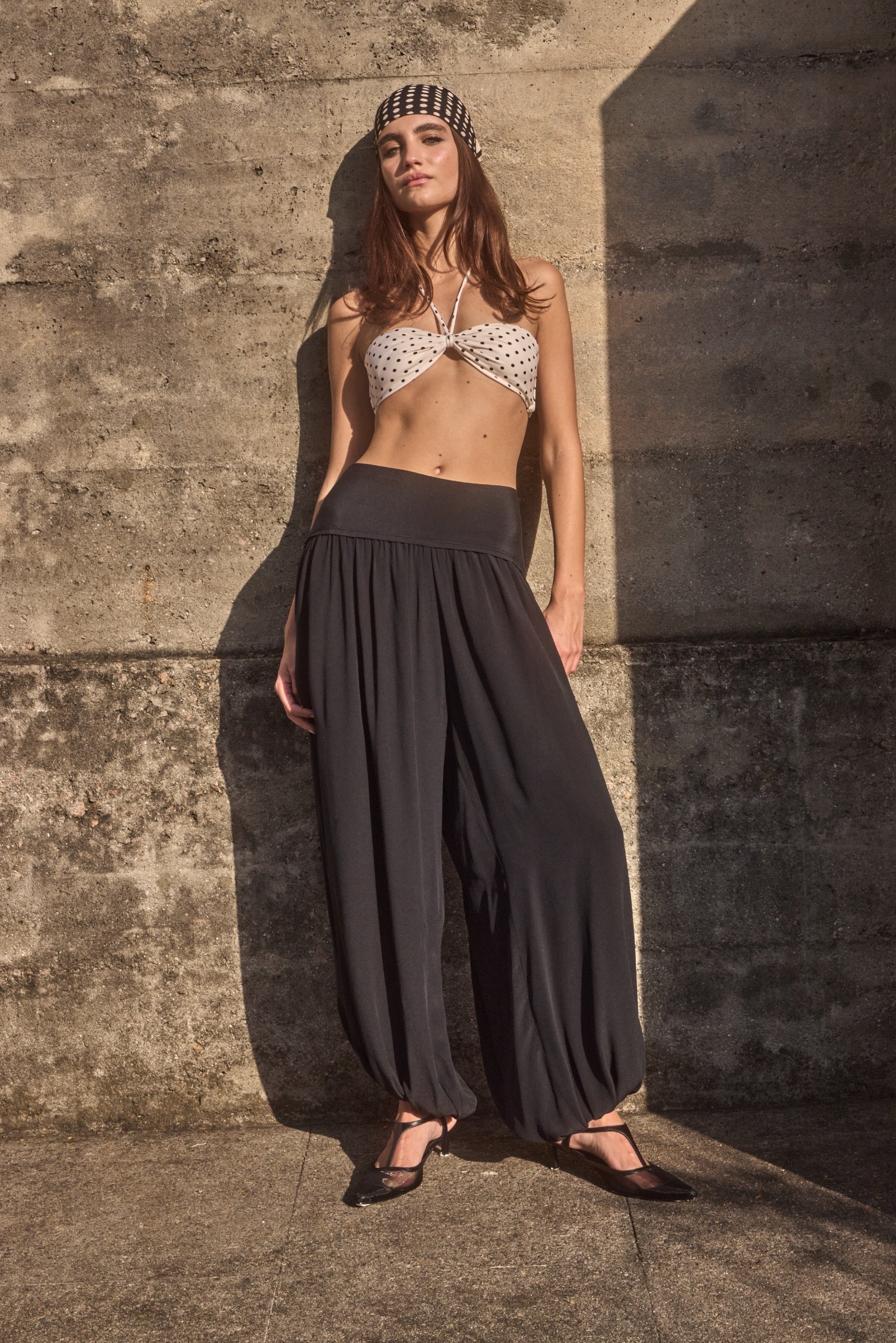 Em poá baunilha com preto, o lenço da coleção Resort traduz a estética retro-chic em sua forma mais versátil. Leve e sofisticado, pode ser usado no pescoço, nos cabelos ou como acessório de beachwear à la française. Um toque de elegância atemporal para acompanhar o verão Bonne Soirée.