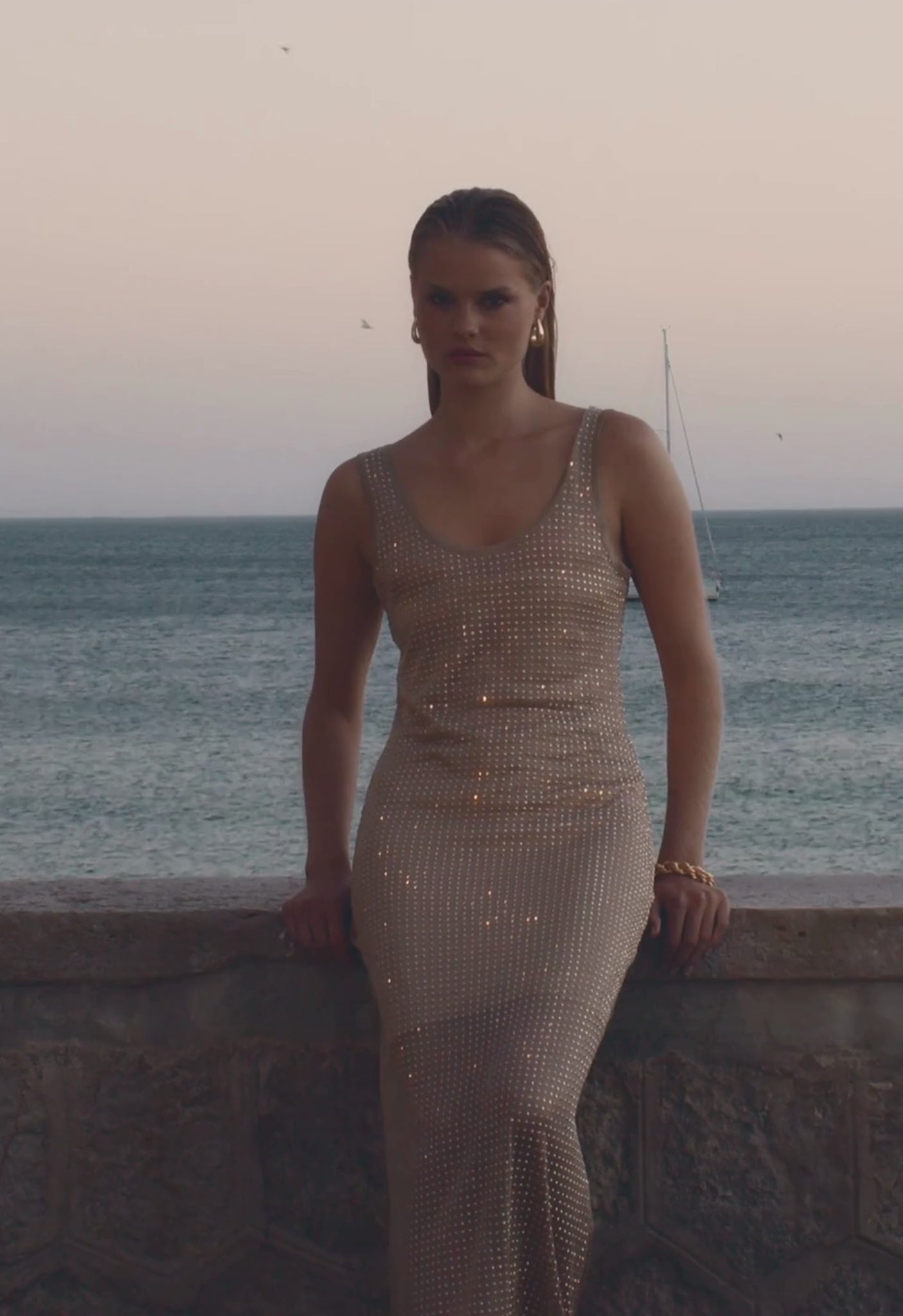 O Vestido Jordanna é confeccionado em tricot com aplicação de cristais hot fix, que o transformam na atração da noite. Com modelagem ajustada ao corpo e comprimento longo, valoriza a silhueta em uma leitura sofisticada e contemporânea. Vem com forro avulso, criando duas propostas de styling.